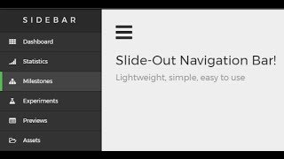 Learn how to create a animated sidebar menu with HTML, CSS and JavaScript. In this video we\'ll walk you through step-by-step on how to add sidebar in ...