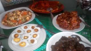 Menyiapkan menu special untuk menyambut tamu istimewa.ada dendeng goreng, mie goreng istimewa, sambal kentang basa, sate dan daging bumbu age.
